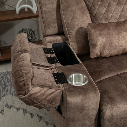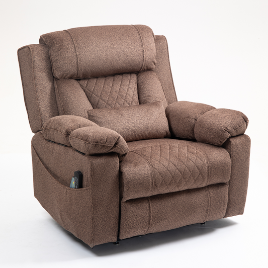 JUUXO Majesty 2.0 Oversized 4-Motor Lay Flat Lift Recliner Chair with Heat & Massage - 400 lb - Brown Chenille