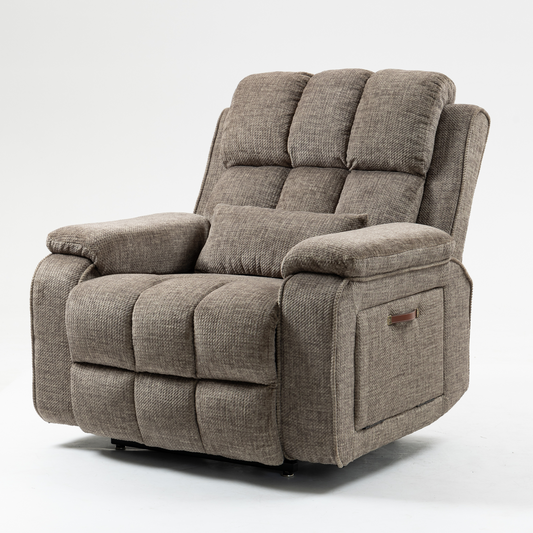 JUUXO Maximus Big Man Recliners Power Lift Chair with Heat & Massage - USB & Type C Charging- 400 lbs Capacity - Brown Chenille