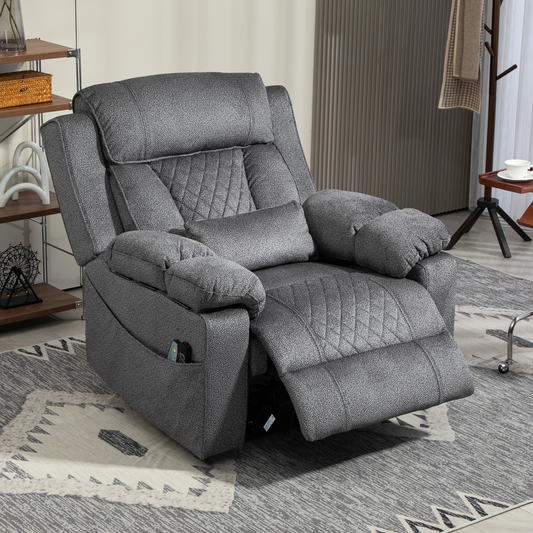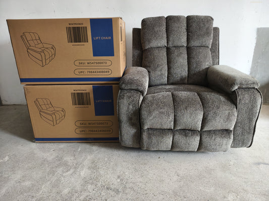 JUUXO Maximus Big Man Recliners Power Lift Chair with Heat & Massage - USB & Type C Charging- 400 lbs Capacity - Grey Chenille