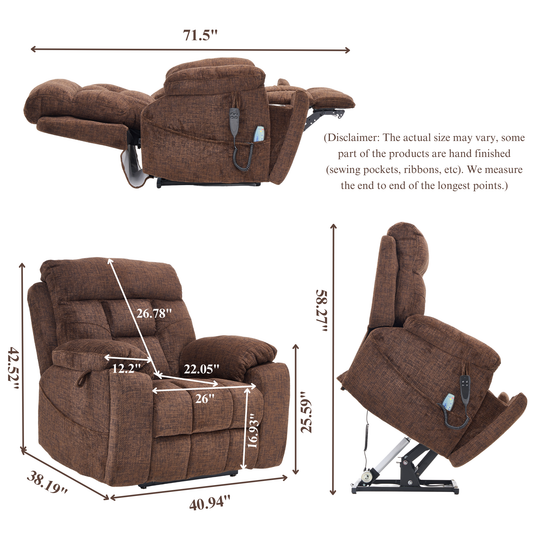 Titan 2.0 Oversized Lay Flat Recliner Dual Motor Lift Chair with Heat & Massage - 400 lbs Capacity- Chocolate Chenille