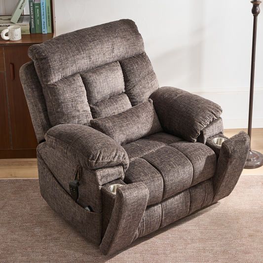 Titan 2.0 Oversized Lay Flat Recliner Dual Motor Lift Chair with Heat & Massage - 400 lbs Capacity- Truffle Chenille