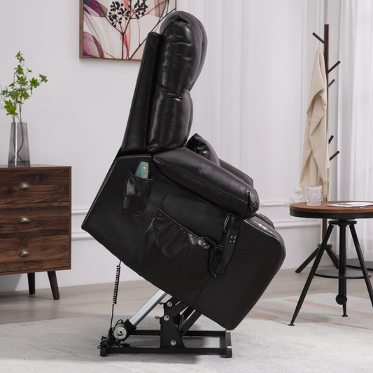 Widelay Oversized Lay Flat Recliner Lift with Heat & Massage, 400 lbs - Brown Leather