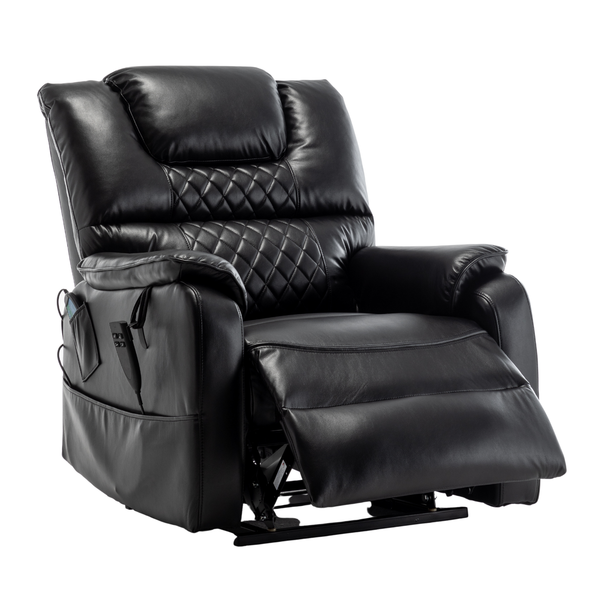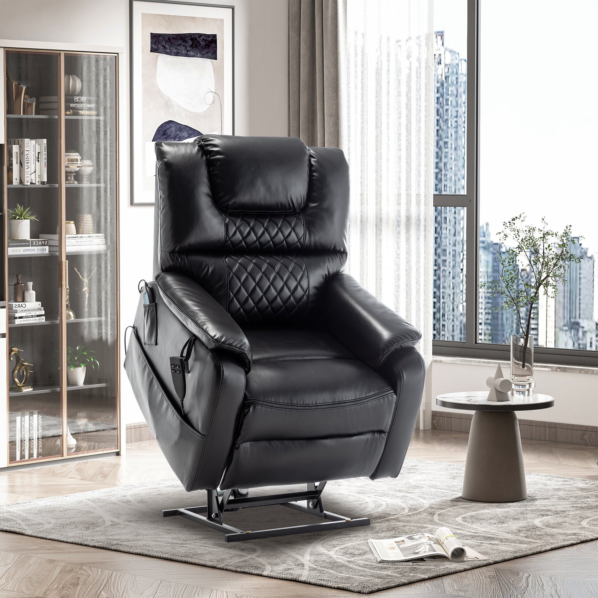 Panorama 2.0 Lay Flat Lift Recliner with Heat & Massage Power Lift Chair 400 lbs- Black Leather