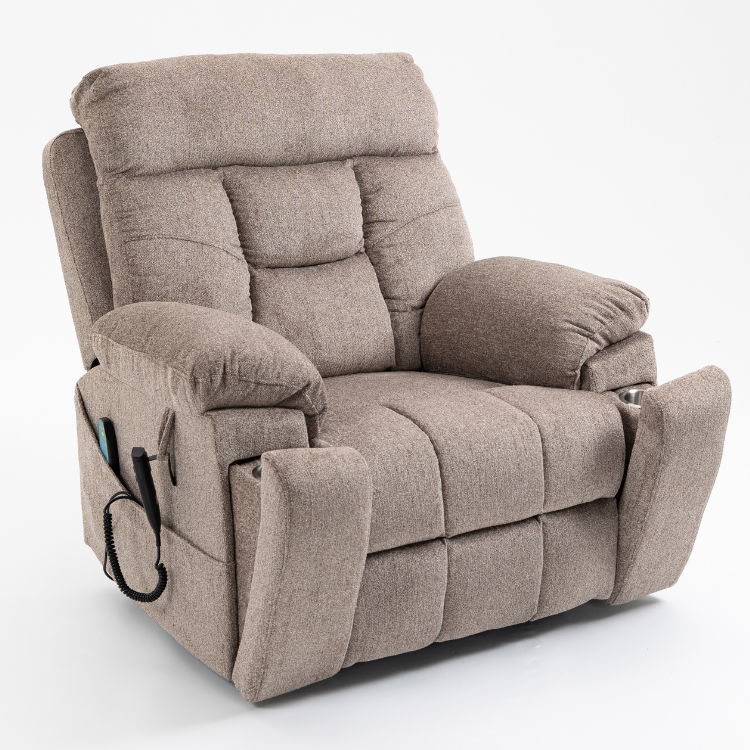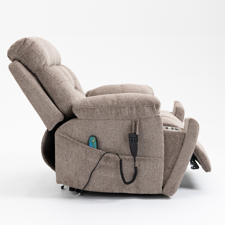 The Titan 2.0 Lift Chair combines a 180-degree lay-flat recline with a 26-inch wide seat for ultimate comfort. It supports up to 400 lbs and features dual remotes for easy massage and heat adjustments. Highlighting its charm the chair is upholstered in plush Chenille and cozy Knitted Plush, ensuring soft, inviting comfort. With hidden cup holders, side pockets, and infinite position controls, the Titan 2.0 is the epitome of relaxation, emphasizing the softness and comfort of its premium fabrics.